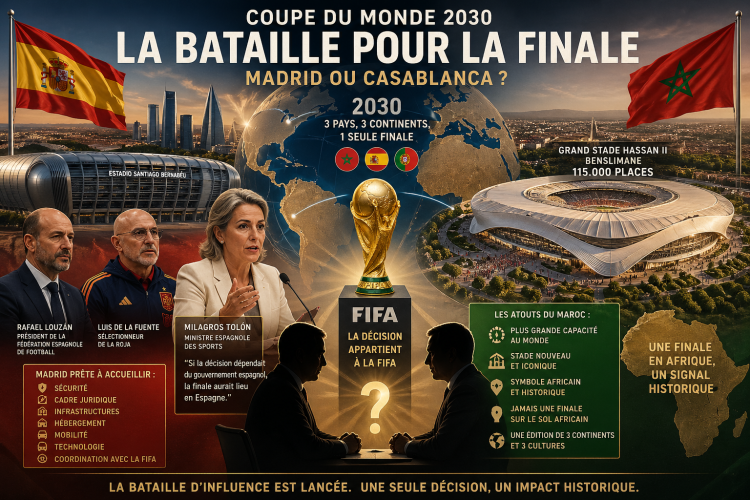 La bataille pour accueillir la finale de la Coupe du monde 2030 prend de plus en plus des allures de compétition diplomatique entre les pays coorganisateurs. Alors que le Maroc, l’Espagne et le Portugal porteront ensemble cet événement planétaire, la question du stade qui abritera l’ultime affiche continue de faire monter la pression, particulièrement du côté espagnol.
