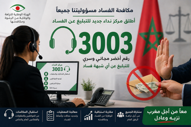 Le Maroc se dote d’un nouvel outil pour renforcer la lutte contre la corruption. L’Instance nationale de la probité, de la prévention et de la lutte contre la corruption a annoncé le lancement du centre d’appel 3003, un numéro destiné à recevoir les signalements, plaintes et informations liés aux actes de corruption.