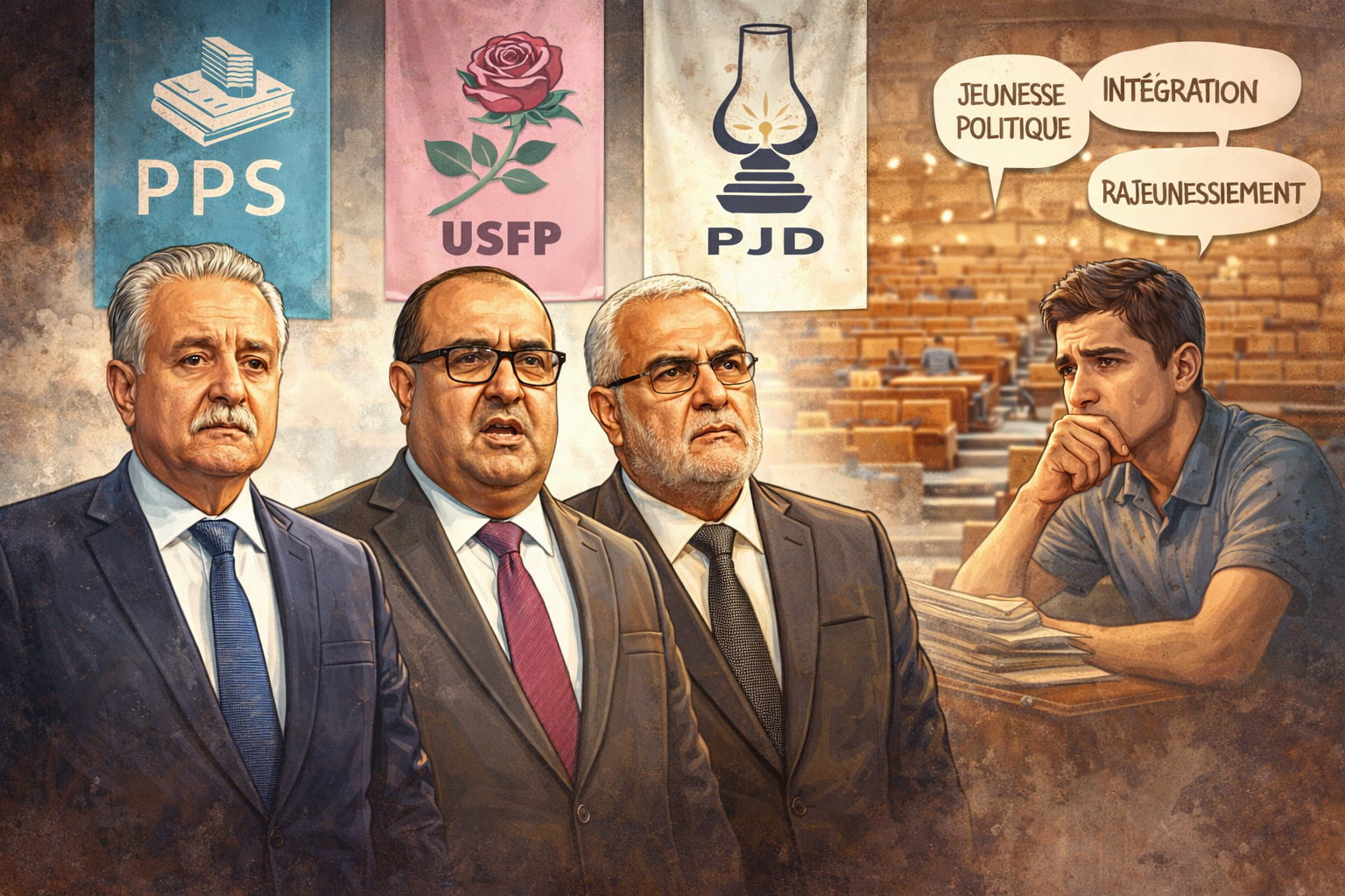 Autrefois liés dans un bloc de l’opposition au Parlement, dans une coalition contre-nature qui n’a pas trop duré, les formations du PPS, de l’USFP et du PJD constitueront une particularité lors des élections de cette année, avec des leaders ayant usé leurs fauteuils.